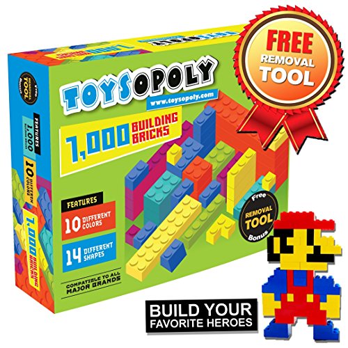 Download ToysOpoly 1000 Pieces Building Bricks - Compatible with Classic Legos, Mini Mega Bloks, Kinex Sets, Creative Duplo, Tyco, KRE-O + Free Removal Tool